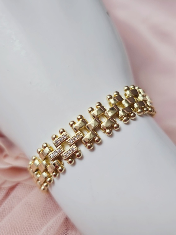 Złota bransoletka z cyrkoniami – stal chirurgiczna 316L | Butik Celebrytka