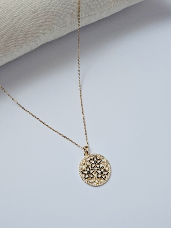 Naszyjnik kwiat czarna cyrkonia